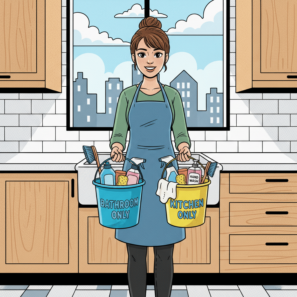 We use different colored microfiber cloths for different areas. Blue for bathrooms, green for kitchens, yellow for general surfaces. This prevents cross-contamination between high-risk and low-risk areas.